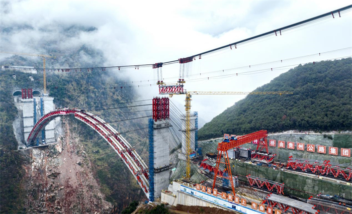 2024年1月11日,乌蒙山大桥右幅主拱圈成功合龙