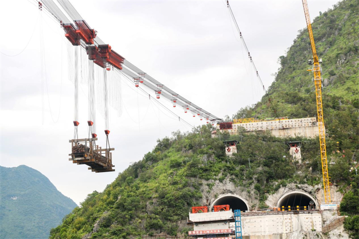 2023年8月29日, 乌蒙山大桥无塔架缆索吊装系统试吊成功