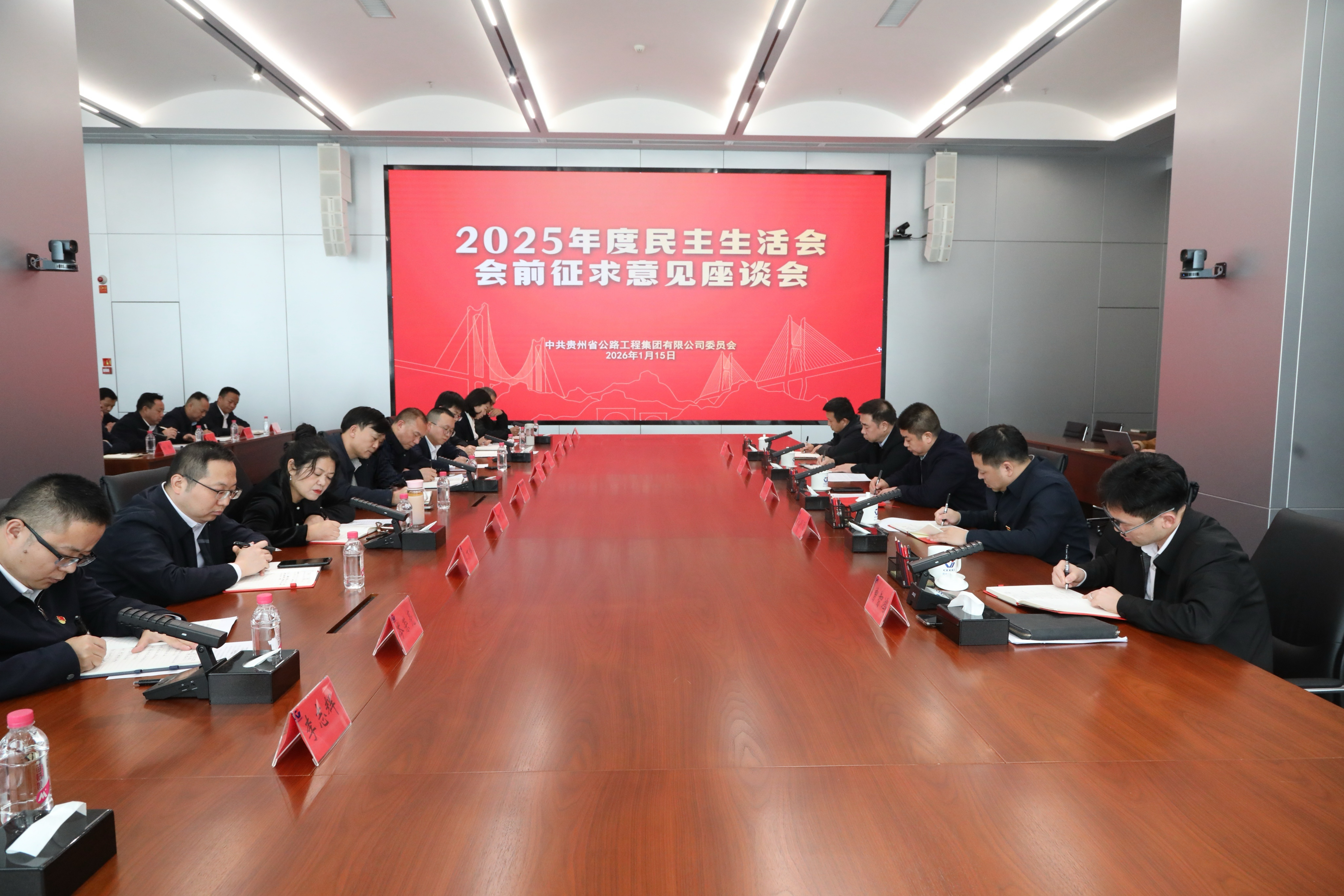 1月15日,贵州公路集团党委组织召开2025年度民主生活会会前征求意见座谈会,广泛听取各方面对集团党委班子和成员的意见建议,为高质量开好民主生活会打下坚实基础。集团党委书记、董事长马白虎出席会议并讲话,在家领导班子成员朱明聪、崔文武、曾智鸿、刘小飞参加会议。