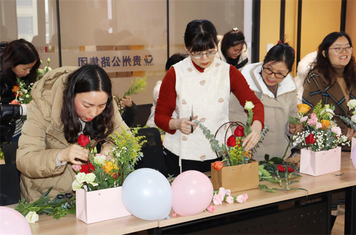 第七工程公司组织开展“巾帼同行 芳华齐绽”主题活动,通过插花活动,从鲜花材料特点和各自审美,自由发挥做自己的花艺师。同时,从电影《第二十条》中女职工对“正当防卫”等法律规定及其背后的法治理念有了更深刻地认识,也激发了大家对法律知识深入学习的热情。