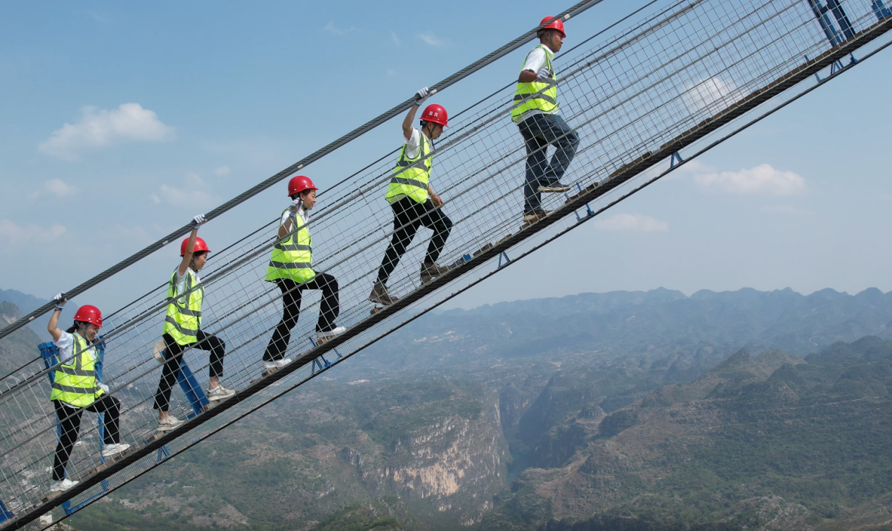 贵州公路集团青年突击队在花江峡谷大桥高空作业