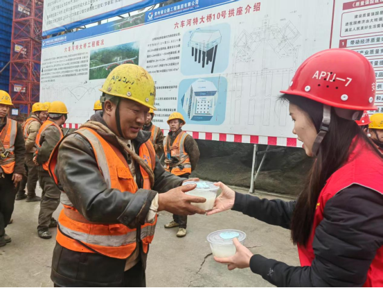 第三工程公司团支部在安盘七标工地发起“工地暖心日”活动。志愿者们为工友送上热气腾腾的汤圆和手写祝福卡,用“舌尖上的温暖”驱散施工疲惫;更通过“安全知识快问快答”互动,发放流感防治手册及暖手贴,让安全意识和关怀“双向奔赴”。