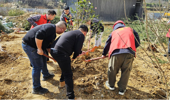第七、第八工程公司青年志愿者分别在贵安新区、项目一线栽种香樟、桂花等树苗200余株,为工地披上“绿装”;新黔恒物业公司志愿者沿白云大道清理白色垃圾,贵控公司团员青年则化身“园区美容师”,通过“微行动”助力生态之美,生动践行“绿水青山就是金山银山”。