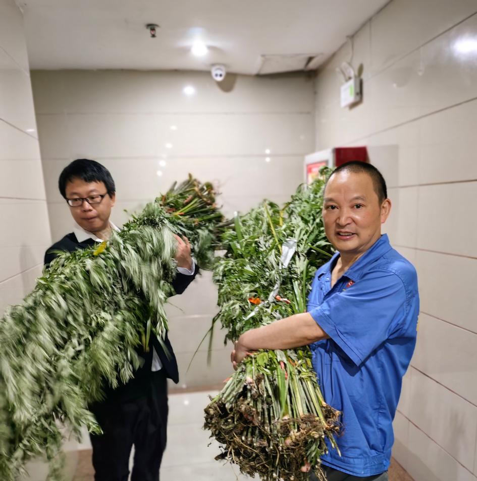 “挂艾叶是老传统啊,我们家年年必买!不过今年物业公司提前给我们免费送上门,真是想得太周到了!”一位小区居民看着艾叶满脸笑容地说到。