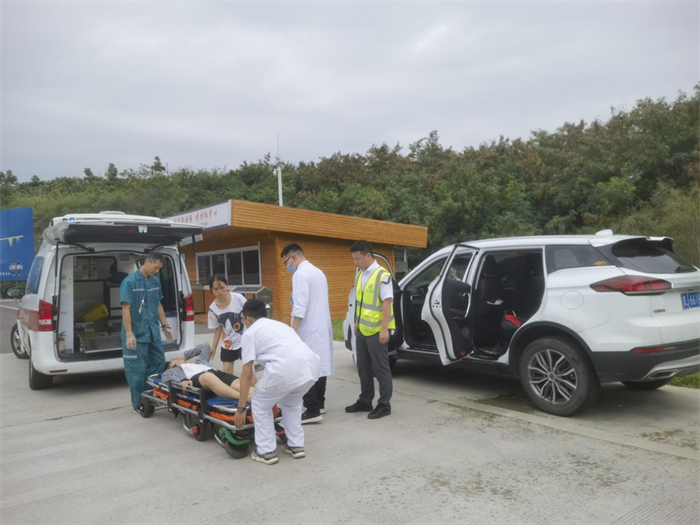 肖锐赶到后,发现车主情况较为危险,此时救护车还未到达,为抢得最佳救治时间,肖锐决定立即发动车辆行驶至附近医院。此时,救护车转过路口红绿灯向收费站驶来。肖锐连忙上前引导救护车,并协助医护人员将男子送上救护车,从接到通知到救护车达到仅用了12分钟,病危司乘也成功脱险。