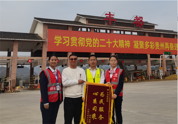 3月18日,丰都收费站收到一名车主送来的特殊礼物——一面印有“为民服务 心系司乘”的锦旗。
