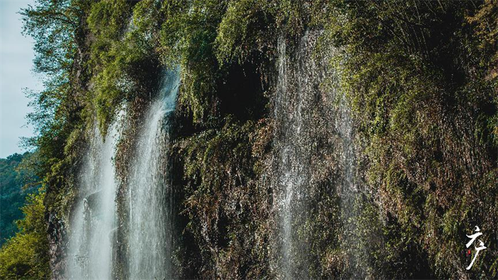 瀑布如同细丝般柔软,又如绸带般飘逸,它们随风起舞,洒落的水珠犹如一串串明珠,闪烁着柔和的光泽,这迷人的瀑布被誉为“珠帘叠翠”。