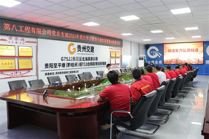 为进一步帮助项目一线党员干部增强纪律意识和规矩意识,推动党纪学习教育走深走实,近日,贵州公路集团第八工程有限公司党总支书记张金秋到贵平13标为项目党员干部讲授党纪学习教育专题党课。