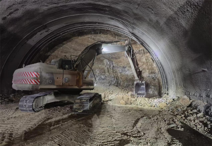 宝塔坪隧道于2021年7月25日开工建设,集合了分离式、小净距、极小净距、超小净距、连拱等5种设计结构形式,其中右幅全长2069米,地质为巴东组岩层,呈水平分层产状,采用爆破和机械冷开施工组合方式,其中冷开长度875米。