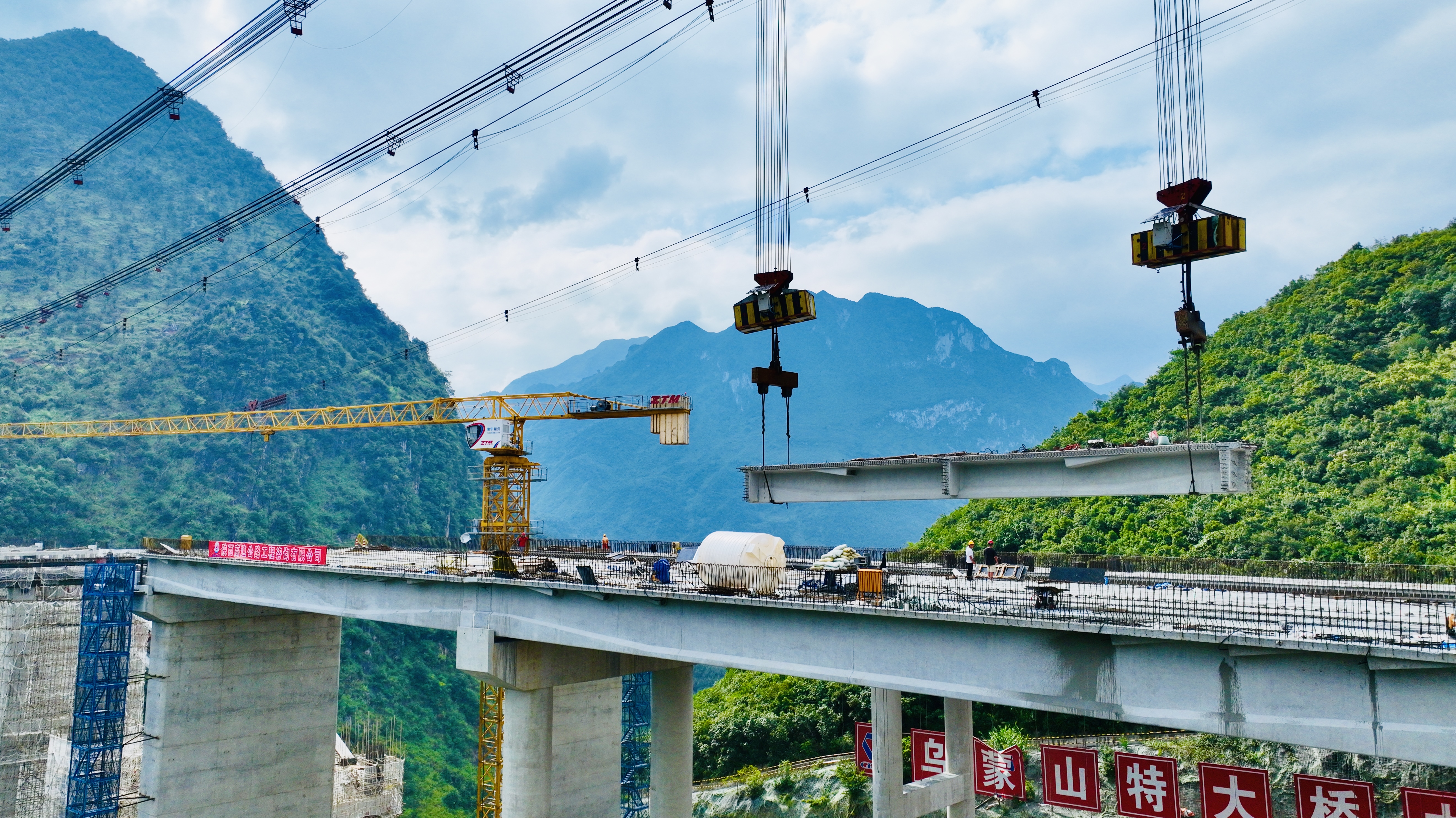 乌蒙山大桥右幅主桥首片T梁吊装施工
