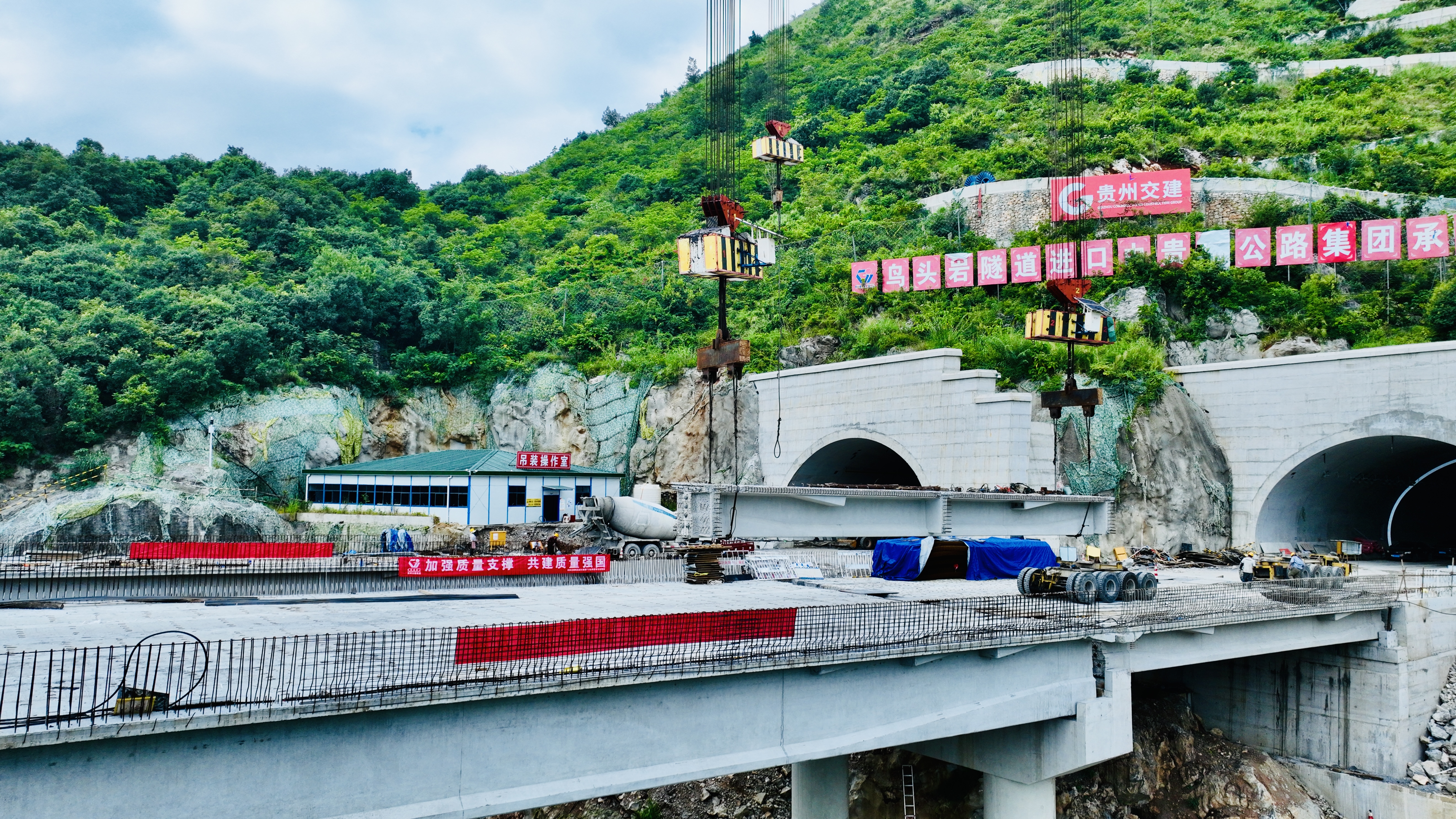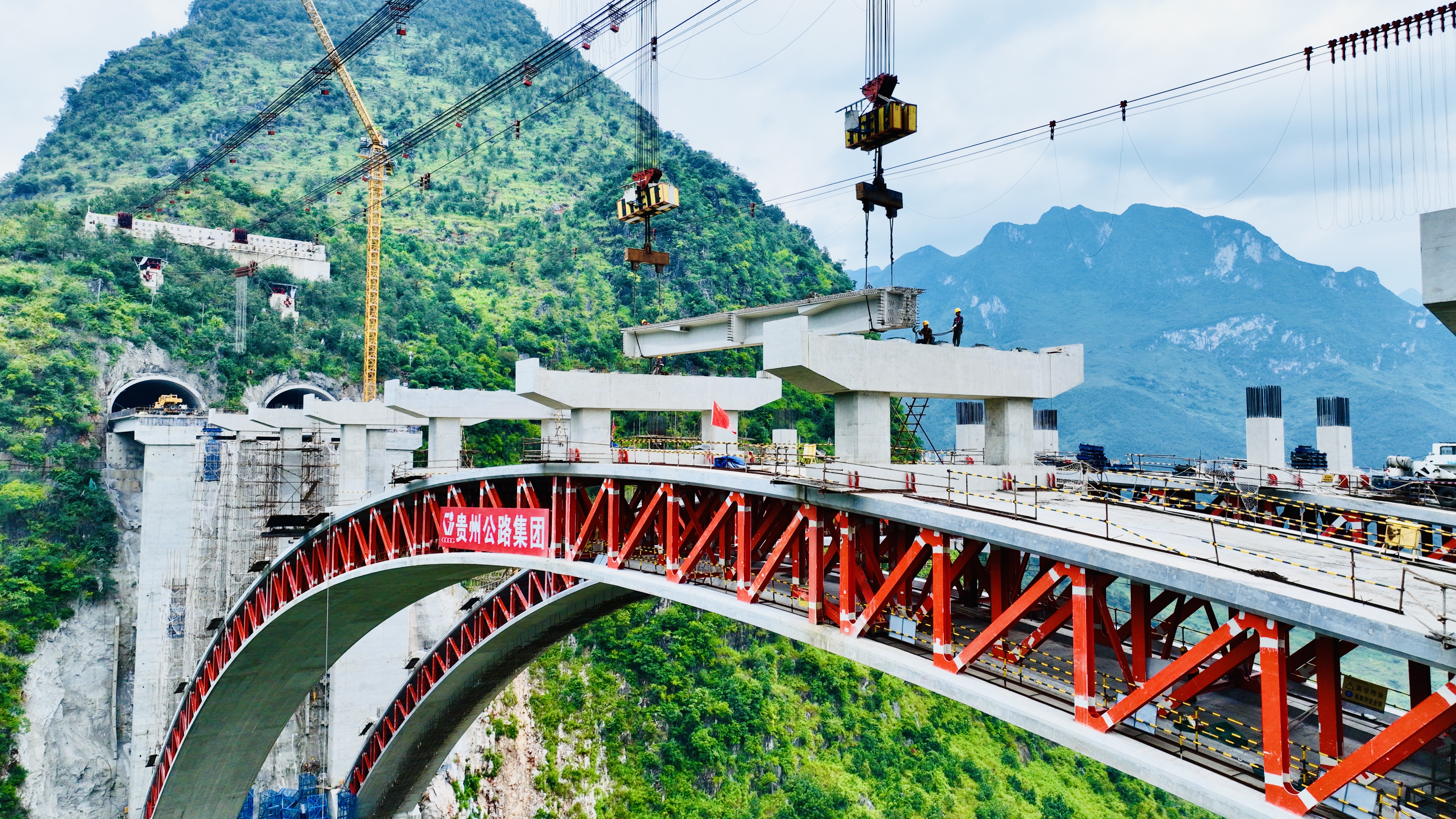 近日,由贵州公路集团第八工程有限公司承建的纳晴12标乌蒙山大桥右幅主桥顺利完成首片T梁架设,标志着大桥上部结构施工进入冲刺阶段。