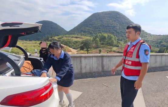 10月6日,一位母亲带着孩子在兴义环高行驶途中,孩子突然身体不适,在车内呕吐。正当她手忙脚乱、焦灼万分之时,兴义环高应急队在巡查时发现了她们车辆停在应急车道上,立即靠边停车,迅速在车后方摆放安全锥,一人主动帮忙搬运后备箱行李,寻找干净衣服给孩子更换,一人负责交通秩序维护。“有你们的帮助,原本焦急的心情,马上就放松了下来。”这位母亲说道。