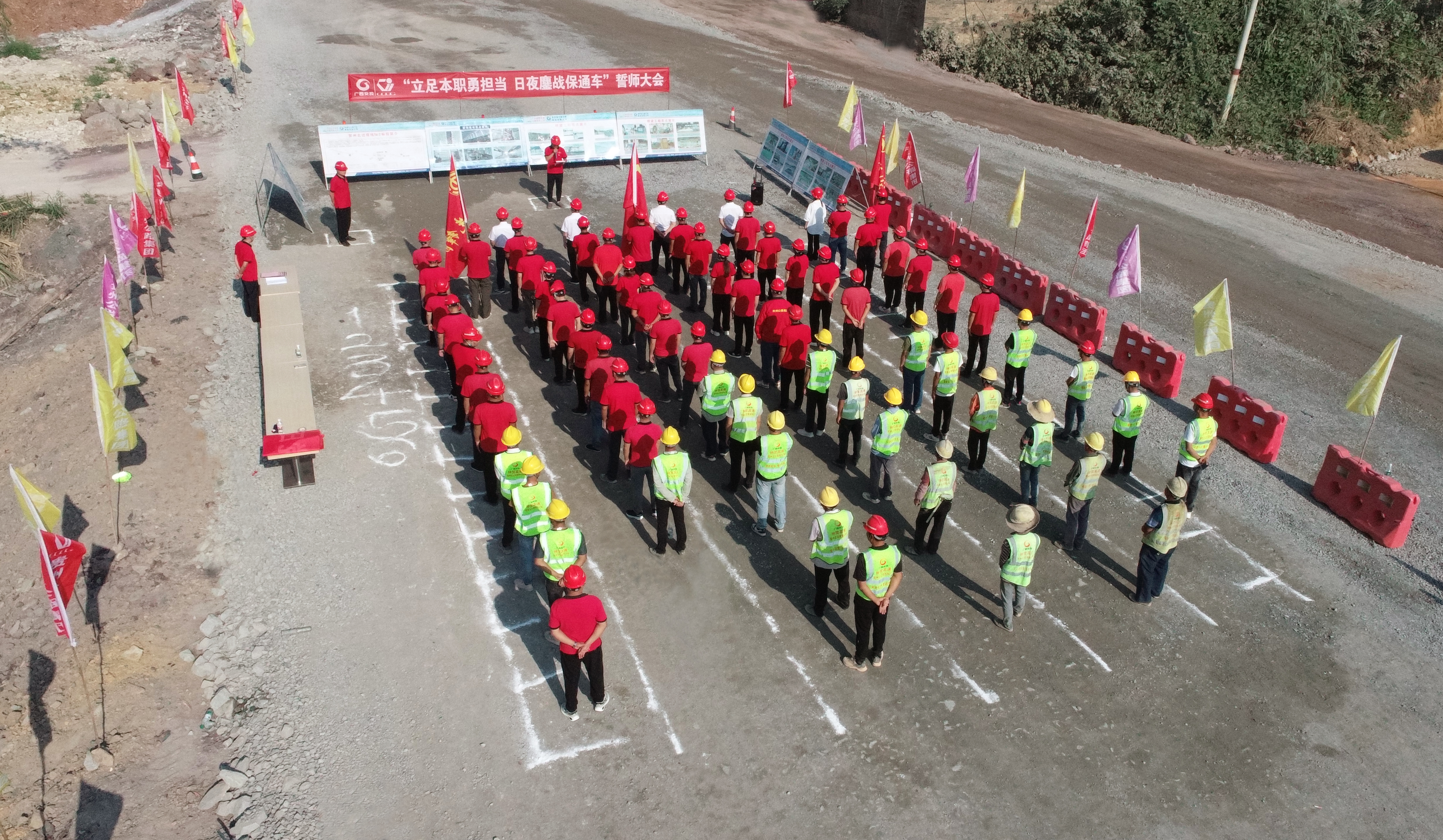 活动中,相关负责人通报项目整体工程进度情况,部署《工期管理实施方案》,明确剩余工程任务,宣读了“大干抢进度,决战保通车”的冲刺动员令,勉励大家提振信心、咬定目标、大干快上。全体参建人员进行了集体宣誓,承诺将全力以赴,认真履行各自岗位职责,确保年底通车目标任务顺利完成。