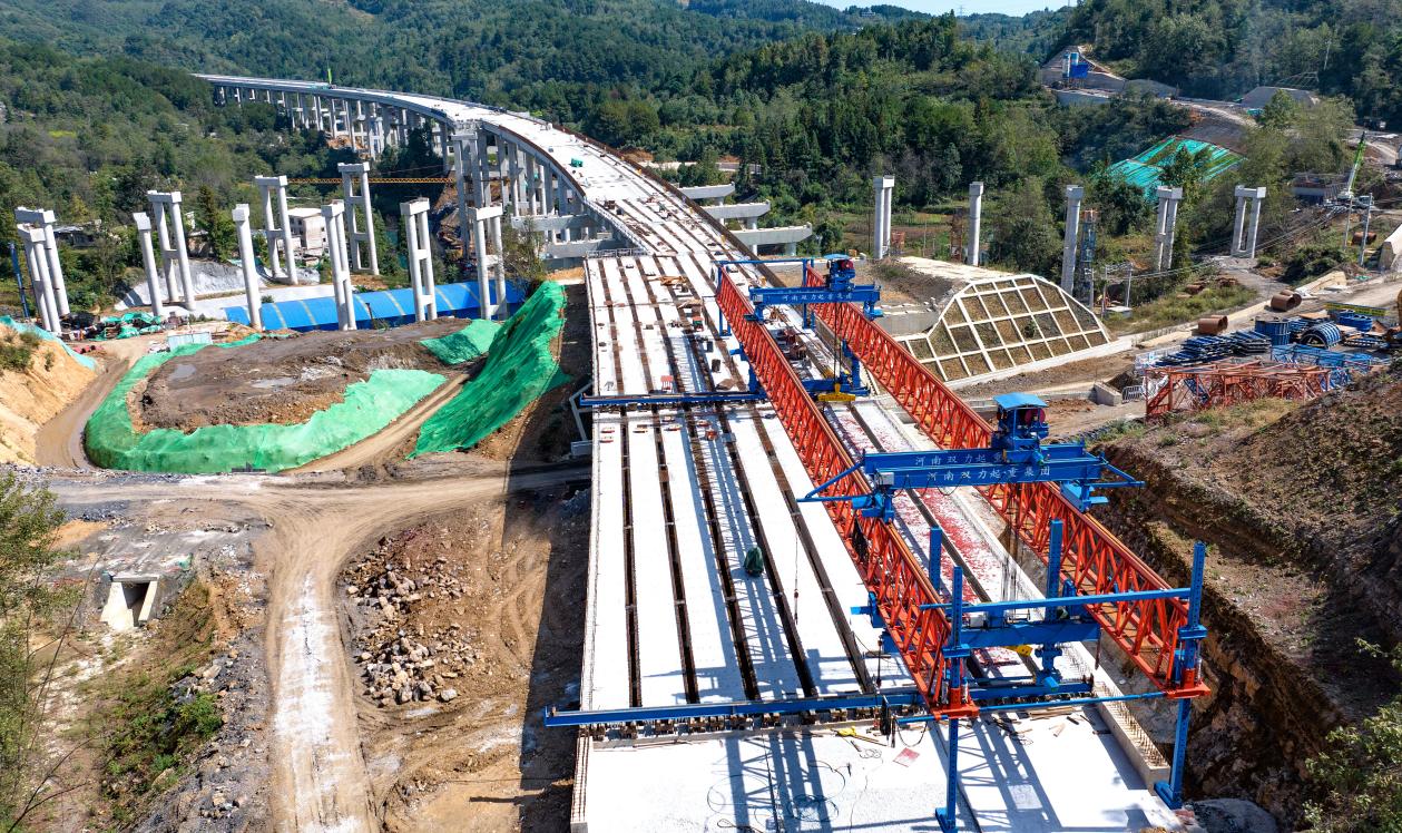 姚家寨特大桥位于清镇市滨湖街道青山村,左幅全长1222米、右幅全长1259米。大桥右幅共需架设30米T梁171片、40米T梁116片。