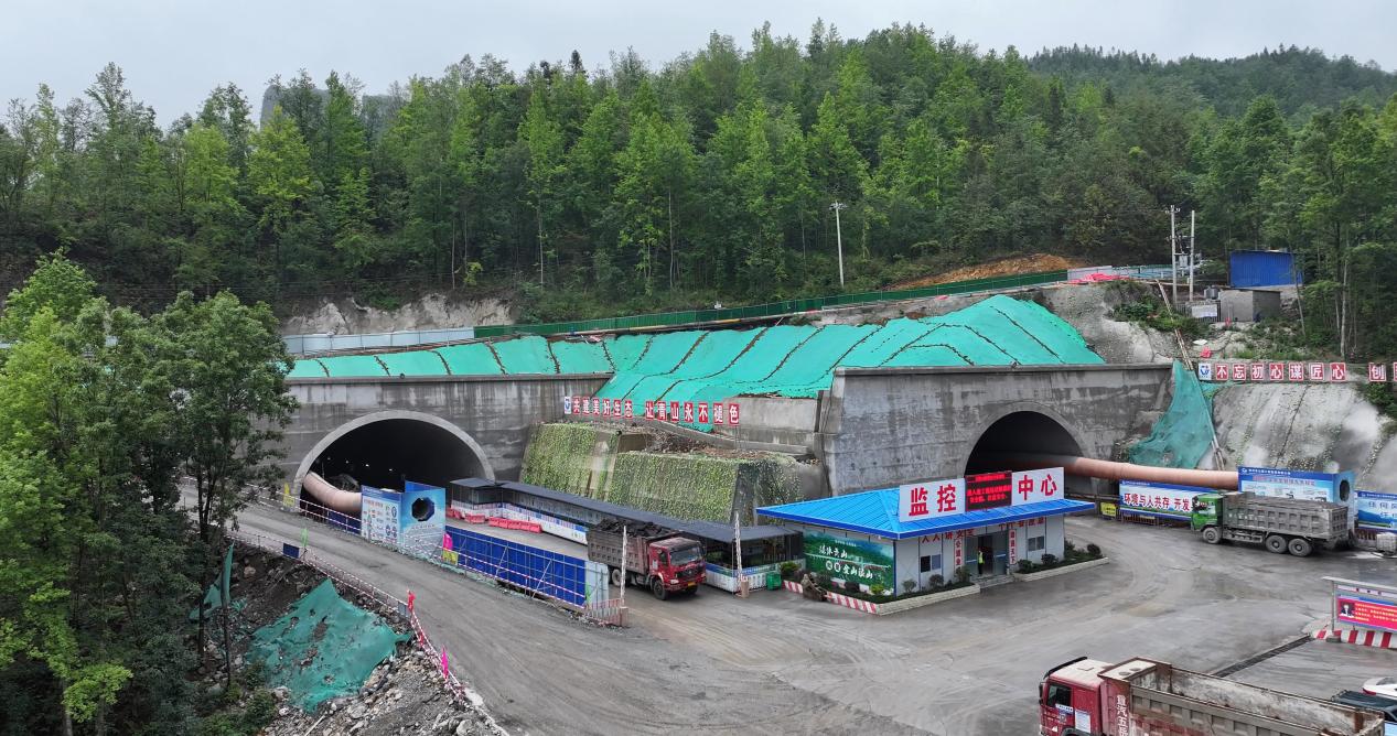 五指山隧道位于水城区花戛乡,属于极小净距到分离式过渡的长隧道,隧道左幅长1473米、右幅长1458米,最大埋深180米,设计时速100千米/小时,为双向六车道,隧道右幅于10月24日贯通。