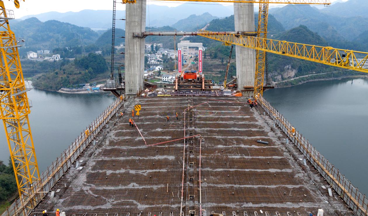 百花湖大桥边跨混凝土主梁第二浇筑段浇筑完成