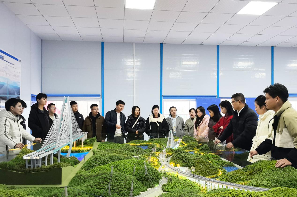 项目工作人员结合沙盘模型、文图资料、宣传视频、周边环境向教研团队详细介绍了百花湖大桥工程概况、施工进度情况,对百花湖大桥施工建设中采用的工艺工法创新、安全质量管理、绿色施工理念等作了全方位的介绍。