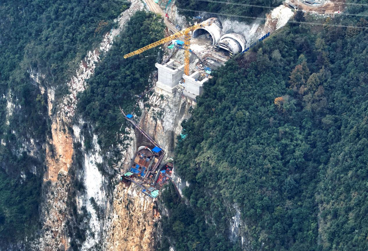 六车河大桥为安盘项目控制性工程,主桥为2×263.45米双联上承式钢管混凝土变截面桁架拱,大桥设有9号、10号、11号3个拱座,截至目前,大桥3个拱座都已完成第二次混凝土浇筑。