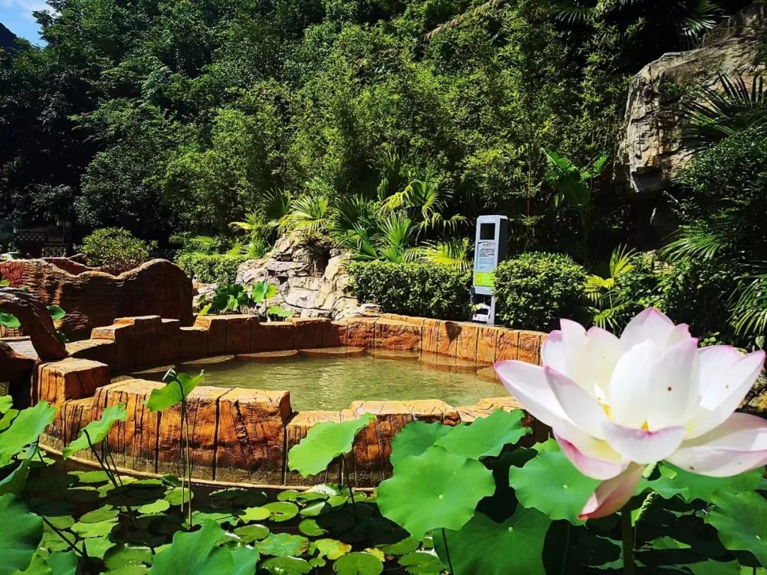 黔贵六广温泉依临六广河大峡谷,临江退台式平台之间以环形道路联通,每个泡池均能欣赏秀丽峡谷风光,共有形态、大小、水温各异的特色室外泡池40余个。酒店庭院内环境安静优美,空气清新,舒适宜人,可观赏六广河美丽风光,是游客休闲度假的好去处。