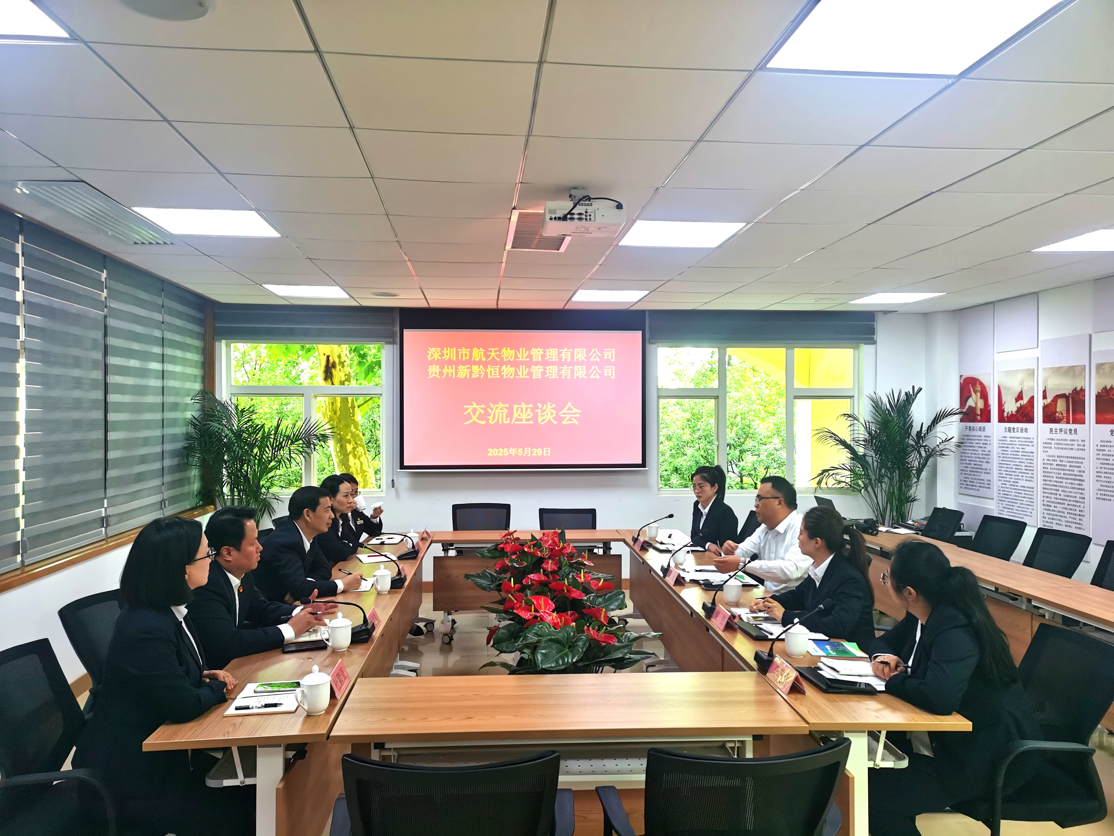 近日,深圳市航天物业管理有限公司副总经理、贵州区域负责人到贵州新黔恒物业管理有限公司开展交流座谈。