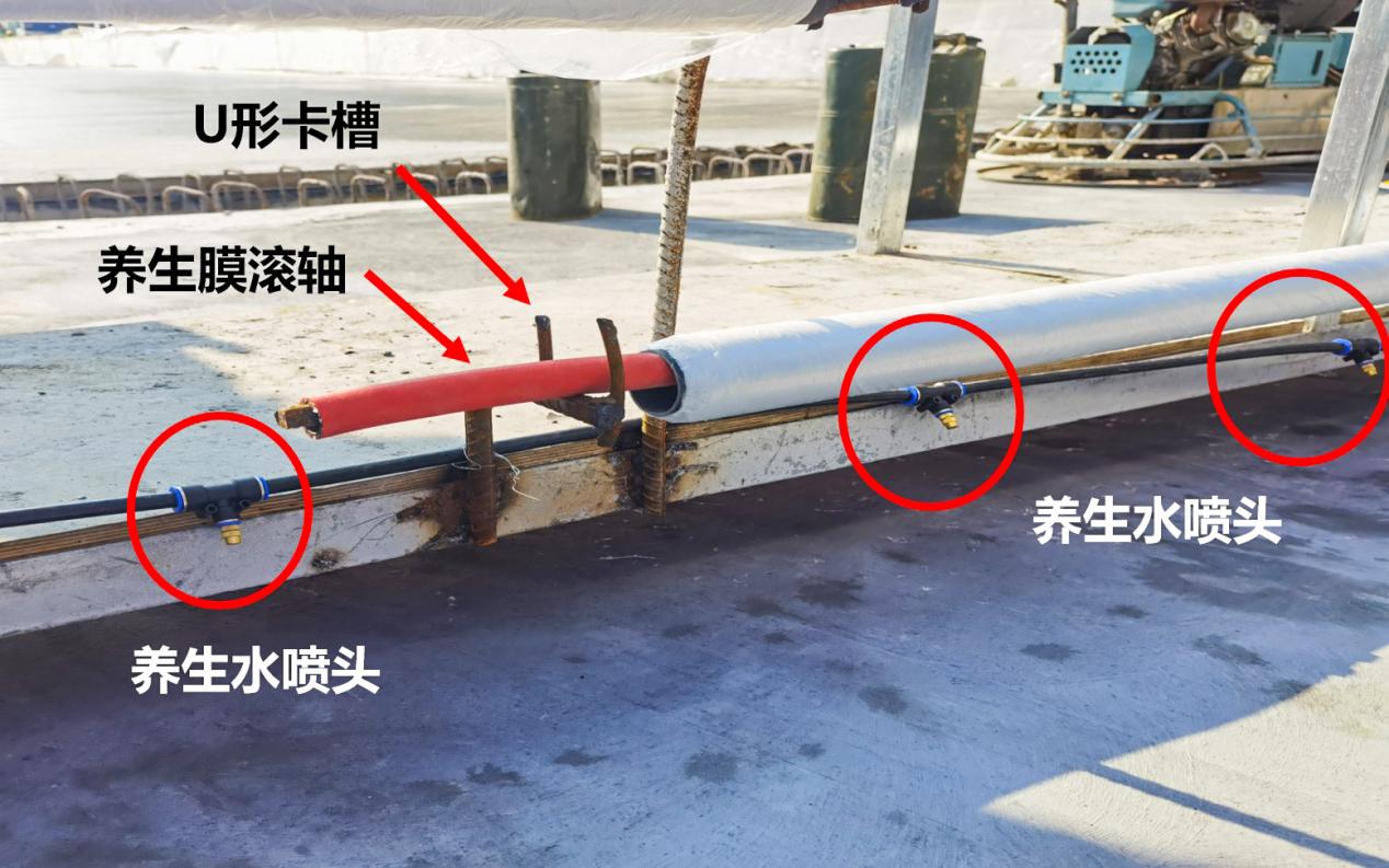 如果桥面比较宽,一卷膜的宽度不够,还可以交错焊接U形卡槽,安装两卷、三卷甚至是多卷养生膜滚轴,让铺膜养生无死角。