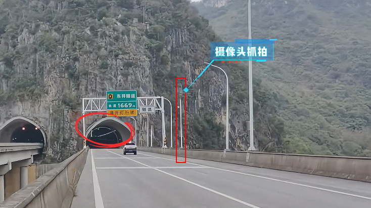 为解决这个难题,兴义环高团队开展技术攻坚,创新推出“隧道动态照明控制系统”。该方案依托隧道现有的基础设施,在隧道入口50米处加装抓拍摄像头,通过“摄像头+数据平台”双擎驱动,让照明系统“智能呼吸”:当车辆进入检测范围,卡口平台在0.3秒内将数据传输送至监控综合管理平台,触发“亮灯”机制,入口到出口灯光瞬间点亮;直至车辆驶离,灯光又恢复基本照明状态,全程无需人工干预,真正实现“车来灯亮,车走灯灭”的按需照明效果。