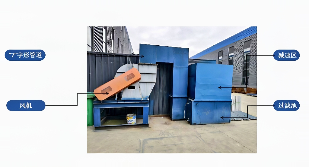在研发过程中,面对高速气流导致液体飞溅、设备体积庞大、过滤效率与维护成本难以兼顾等多重挑战,技术团队通过反复试验,创造性设计了7字形管道和Z字形开孔减速板,成功解决风速过快和结构变形问题;采用模块化水循环系统,兼顾了低成本与高效过滤;选用普通钢材设计,效果堪比高端设备。