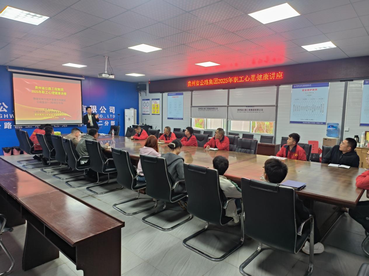 为进一步关心关爱职工身心健康,缓解因工作生活等方面带来的消极情绪与压力,保持积极向上的健康心态,增强职工的幸福感、获得感,让职工更好地投入到工作和生活中。9月29日,贵州公路集团工会“2025年职工心理健康讲座”在第七工程公司云南宣会1-2分部、黔贵建筑公司交职院京东产教项目开展线下专场讲座,本次心理健康知识讲座分别邀请了贵州家有心悦咨询有限公司心理治疗师、心理健康专业研究生朱文、香港大学日新学员导师、香港大学心理学硕士江依然进行授课讲解。