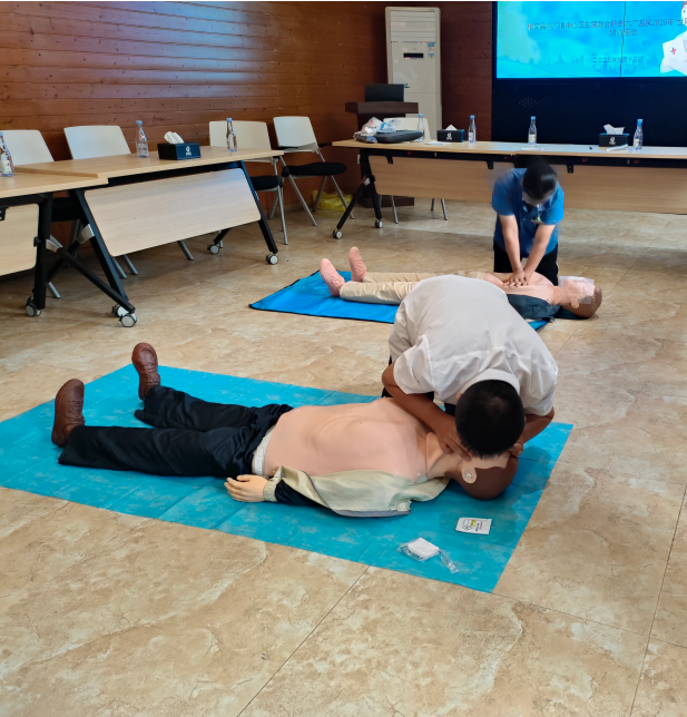 培训采用“理论讲解+实操演练”模式,理论环节,系统讲解心肺复苏及AED(自动体外除颤器)的标准操作流程、海姆立克急救法等核心救护知识;在实操演练环节,职工借助模拟人现场进行心肺复苏的实操训练,熟悉急救流程与技巧。通过培训,职工们不仅全面掌握了急救技能、提升了应急处置能力,更树立了科学施救的急救观念。