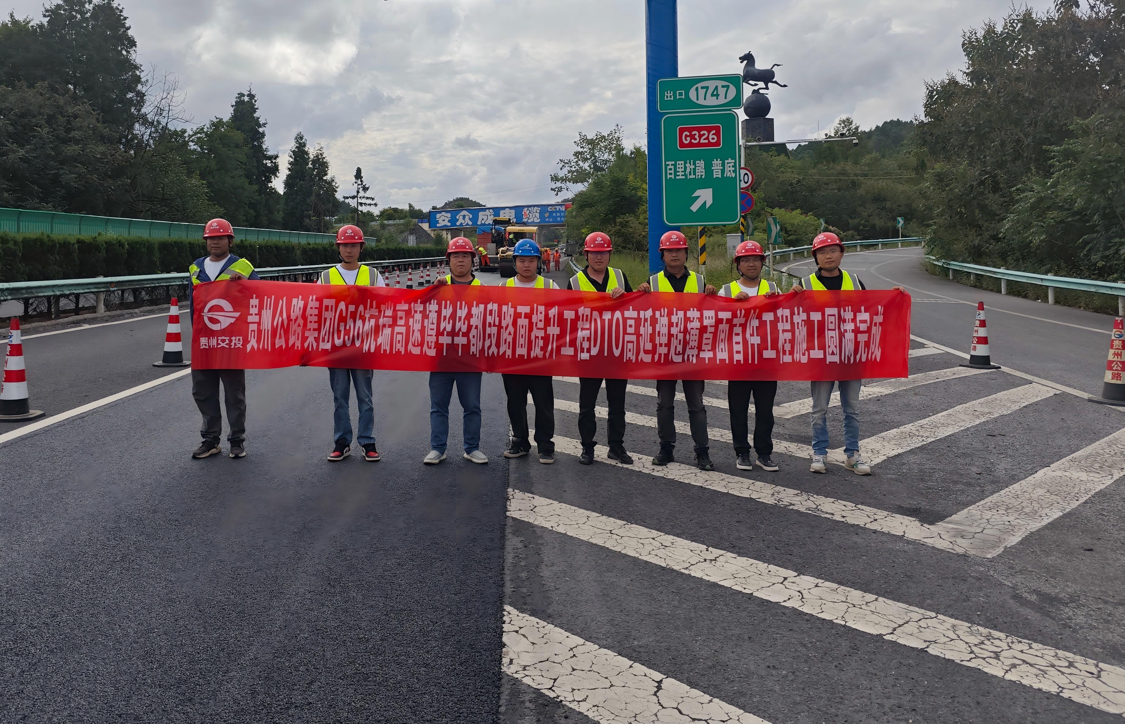 公路养护分公司:G56杭瑞高速遵毕段、毕都段路面提升工程DTO高延高弹超薄罩面首件段摊铺完成