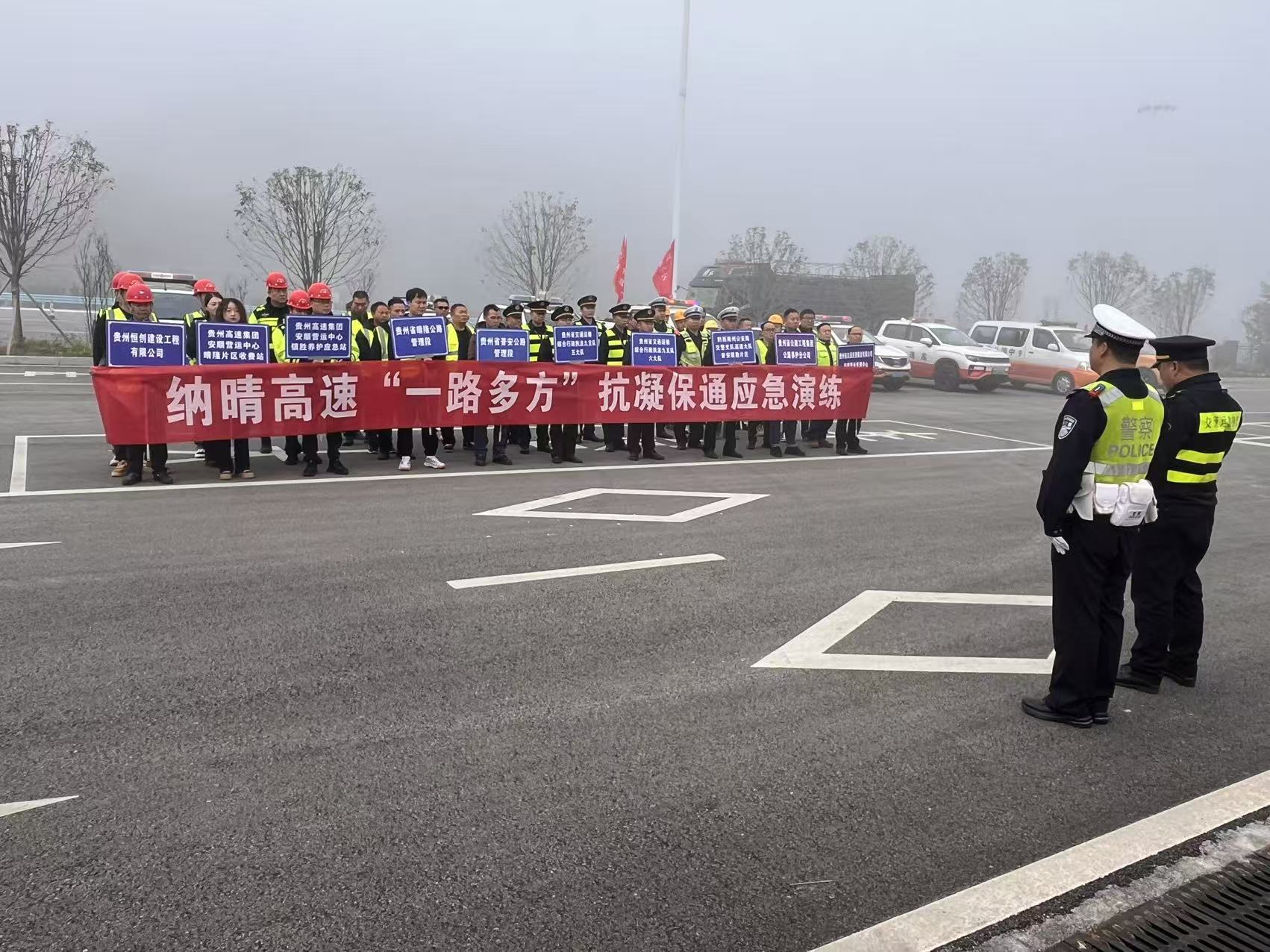 近日,贵州交投集团安顺营运管理中心、贵州公路集团公路养护分公司在纳晴高速黔西南州片区与相关单位联合开展抗凝保畅应急演练,全面提升冬季道路安全保障能力。此次演练针对冬季低温雨雪凝冻天气特点,通过实战化训练检验应急预案的科学性和可操作性。