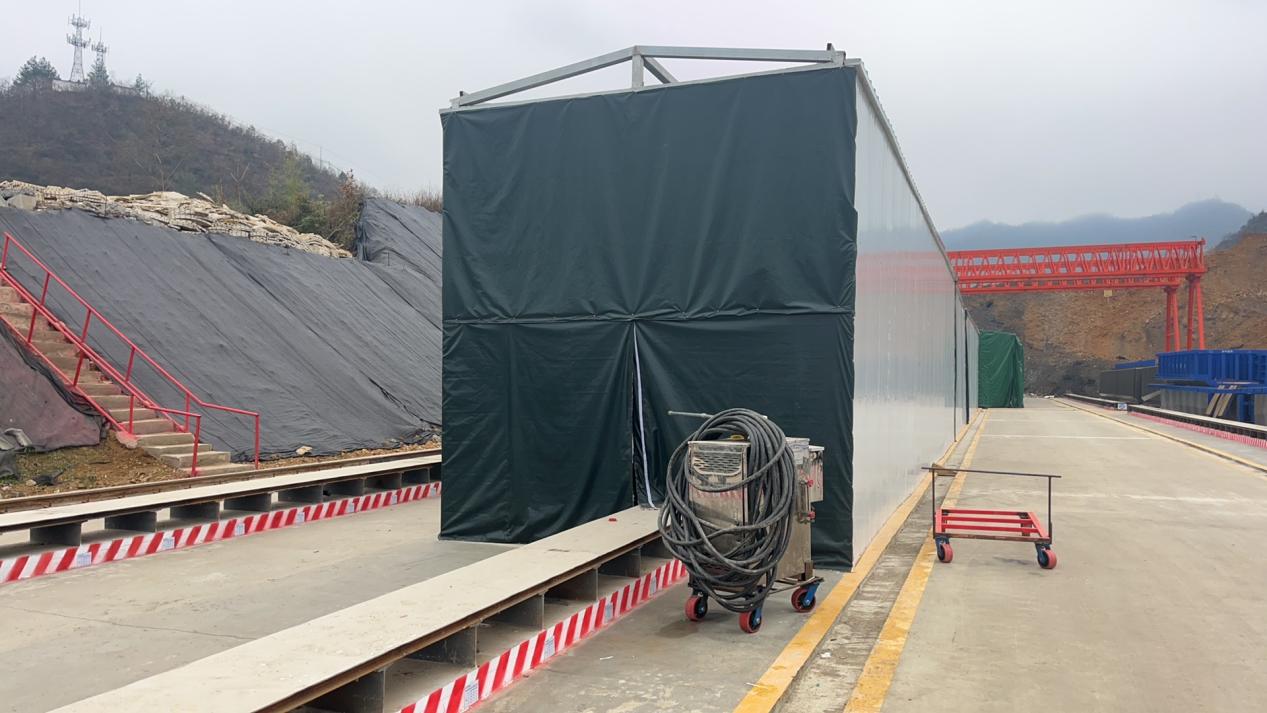 项目在预制场建设中贯彻精细化、集约化理念,通过管线预埋、装配式台座、智能养护系统等多项有效措施确保预制场建设达到标准化要求。严格按照冬季施工方案,配备温湿度智能控制系统,为混凝土养护创造稳定适宜的环境,确保T梁质量。