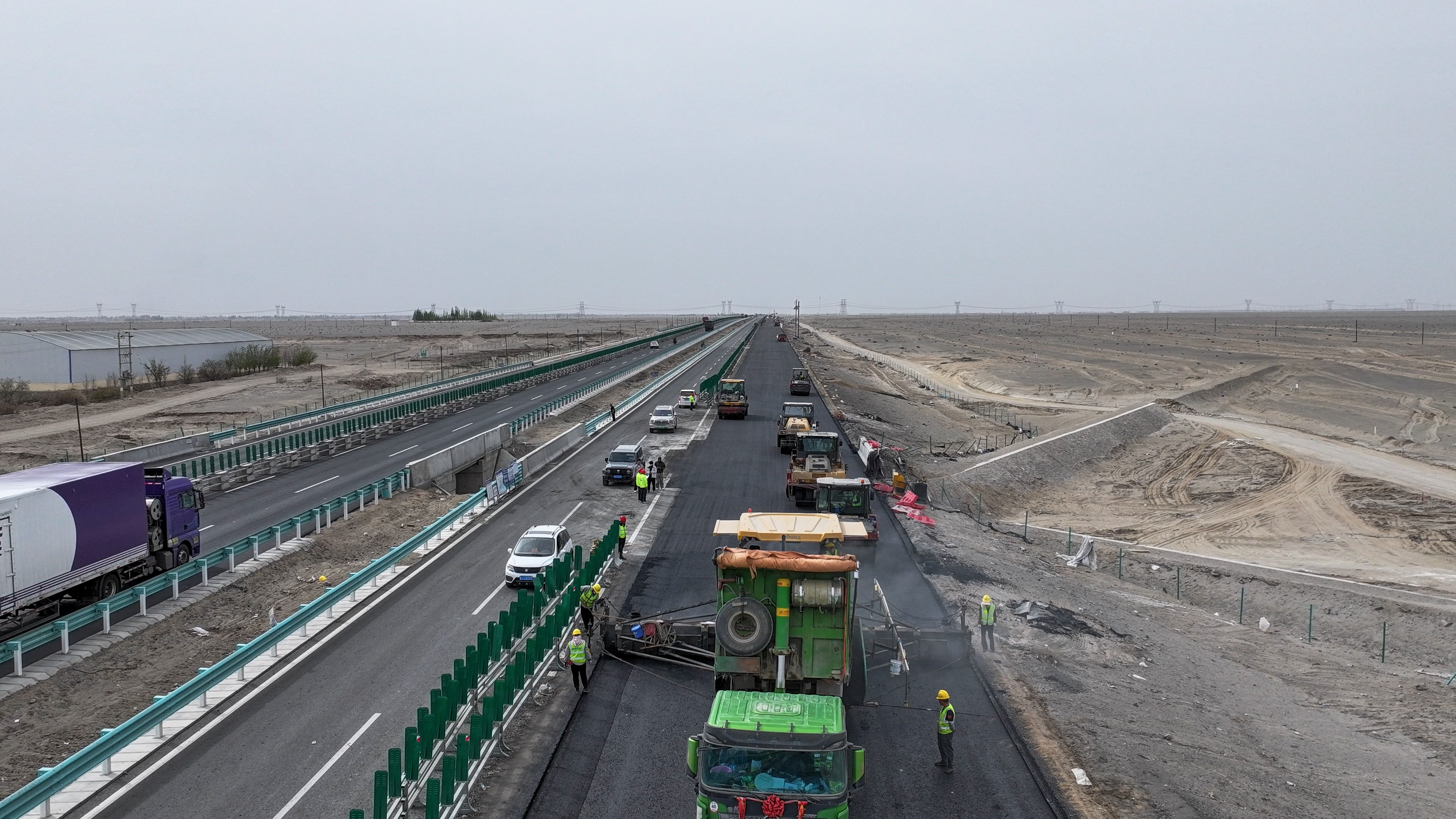 2026年以来,项目部紧抓春季施工黄金期,路面施工实行“24小时两班倒、人停机不停”,全线多点同步发力。目前,新星东互通4月19日封闭施工,推进旧路面铣刨与新铺筑,预计5月19日解封,为路面施工扫清障碍。全体建设者正全力冲刺进疆方向路面中、上面层及交安设施作业,确保2026年6月30日实现8车道全线通车。建成后道路通行能力将提升一倍,成为连接疆内外的黄金通道。