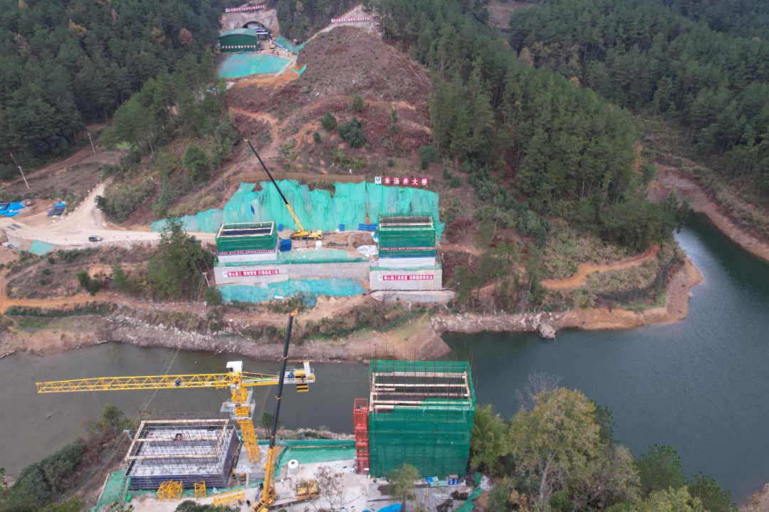 截至目前,米汤井大桥已施工桩基59根,占全桥桩基总数的38.8%;4个主墩承台已全部完成施工,主墩已施工132米,占主墩墩高的80.98%。