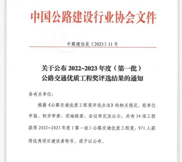 2月14日,由贵州公路集团参建的平罗高速公路项目整体获中国公路建设行业协会2022-2023年度(第一批)公路交通优质工程奖。