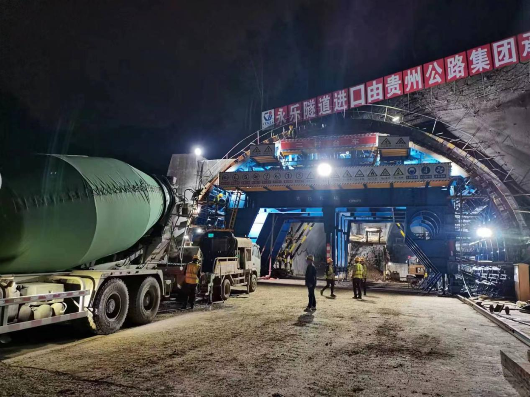 近日,贵州公路集团第七工程有限公司承建的贵黄高速延伸段永乐隧道首板二衬顺利浇筑完成,标志着隧道工程主体结构施工取得阶段性进展。
