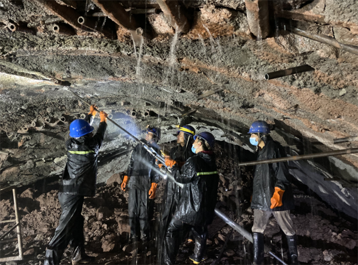 白塔村隧道起于大理市凤仪镇白塔村,止于巍山县永建镇大麦地,左幅长5400.5米,右幅长5406米,单洞累计全长10806.5米,最大埋深439.49米。该隧道是大南高速主线最长隧道和主要控制性工程,隧道进口端至出口端岩性以泥岩为主,泥岩段总长达5.4公里,是贵州公路集团成立65年来承建的第一座大段落泥岩隧道。