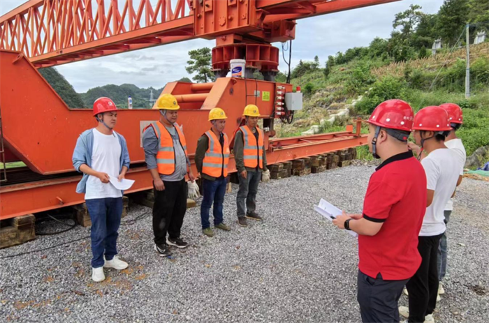 T梁架设前,贵平16标组织设备物资管理、特种设备维修人员检查验收进场设备,保障设备正常运行。同时,在架设过程中严格执行三级技术交底制度,开展施工现场危险源辨识,对高空作业人员安全防护进行检查,确保了整个架梁过程的安全性和可控性。