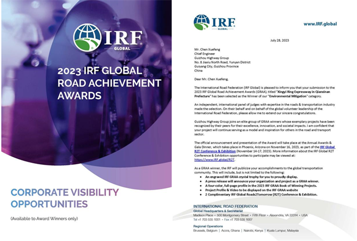 国际认可!全球道路联合会授予兴义环高“全球道路成就奖”