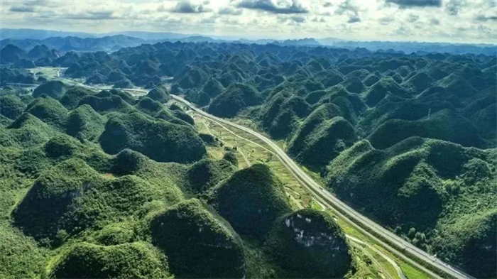 兴义环城高速公路地处中国喀斯特核心区域,路线全长62.5公里,沿线分布马岭河、万峰林风景名胜区和贵州龙国家地质公园以及依山而居的楼纳村等布依族传统村落,被誉为世界最美喀斯特峰林公路。
