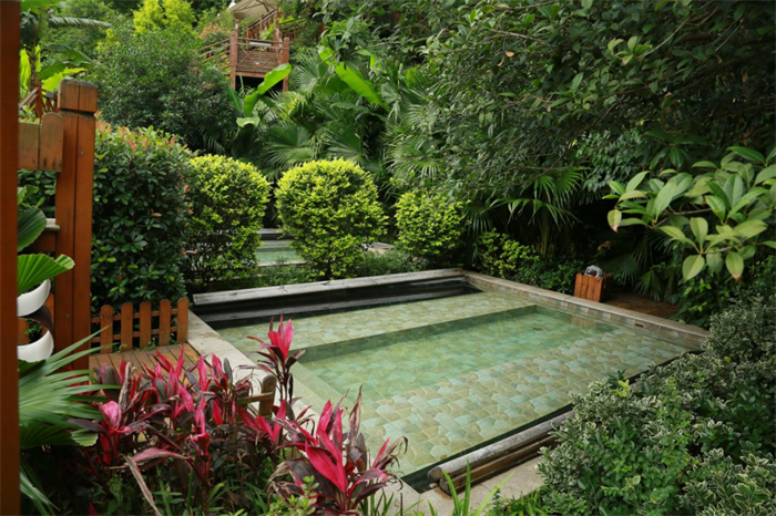 其中,室外温泉泡池区共有形态、大小、水温各异的特色室外泡池40余个,水源于地下1700米热水层,温度高达56摄氏度,泉水含氡气、锶、偏硅酸、硫化氢、氟等20多种矿物质和微量元素。