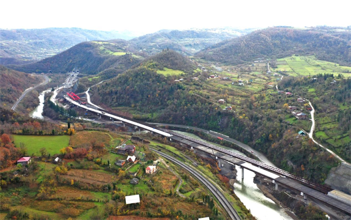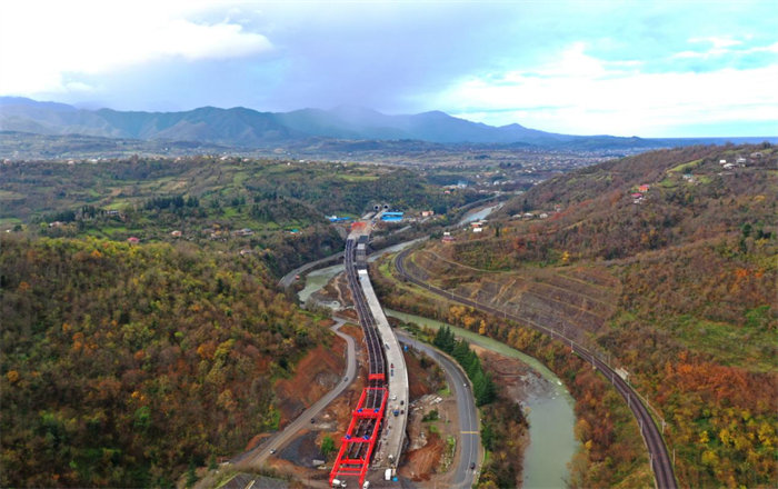 格鲁吉亚项目全长约14.72公里,桥隧比约45.79%,4101、4102、4104等3座钢结构桥共需耐候桥梁钢板约18578吨、耐候角钢约2126吨。截至目前,4102、4104号桥已实现双幅贯通,4101号桥架桥工作正有序推进中。