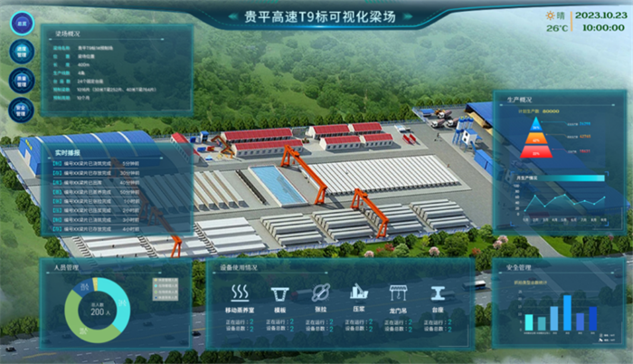 为保证摆龙河大桥建设质量,打造品质工程,第九工程公司贵平9标一手抓安全,一手抓质量。一方面,项目始终坚持更好统筹发展和安全,严格落实安全生产责任制,认真开展安全教育培训、技术交底、安全隐患排查治理及应急救援演练,严厉制止“违章指挥、违章操作、违反劳动纪律”的“三违”行为,筑牢项目安全生产防线底线。另一方面,项目深入推进标准化建设,搭建标准规范智能的T梁场,引入BIM技术对每一片T梁生产全寿命实施监控及追溯,对T梁预制厂内的移动蒸养装置、智能张拉设备、生产管理移动端的数据自动采集聚合,实现T梁预制厂可视化、智能化管理,更好指导现场生产。