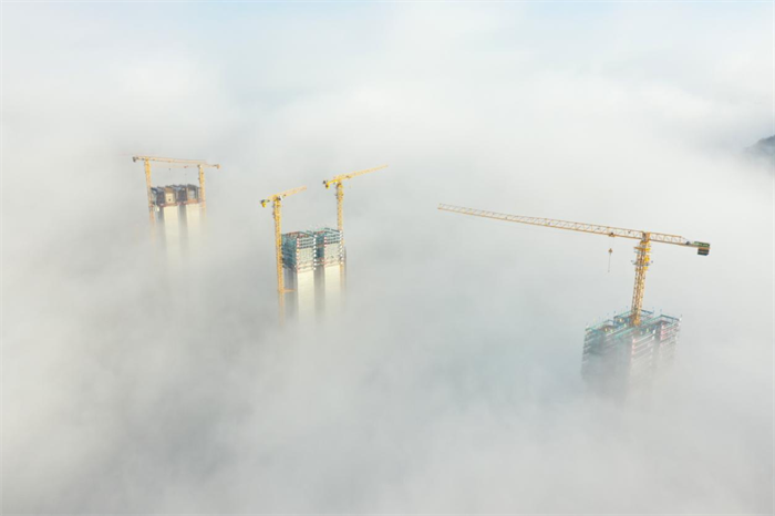 近日,由贵州公路集团第六工程有限公司承建的贵平高速公路南明河特大桥施工现场,桥墩在云雾中时隐时现、美不胜收。