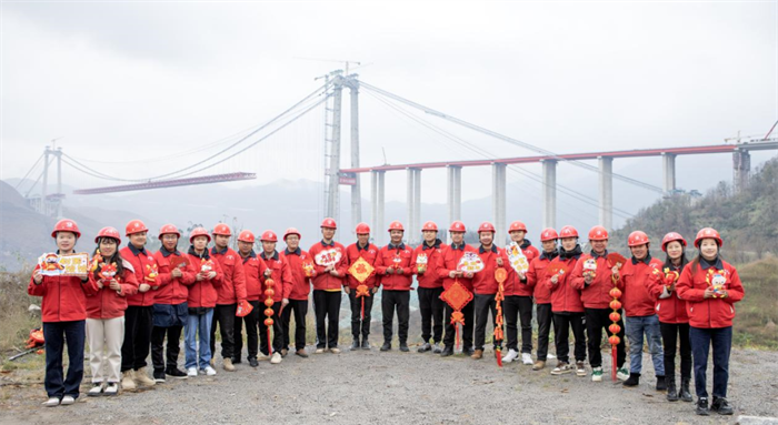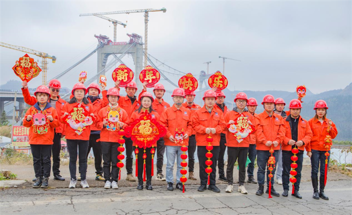 第六工程公司纳晴15标职工在牂牁江大桥前迎春送福