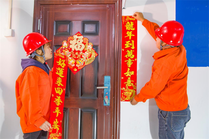 兴义环高公司职工在办公区贴春联