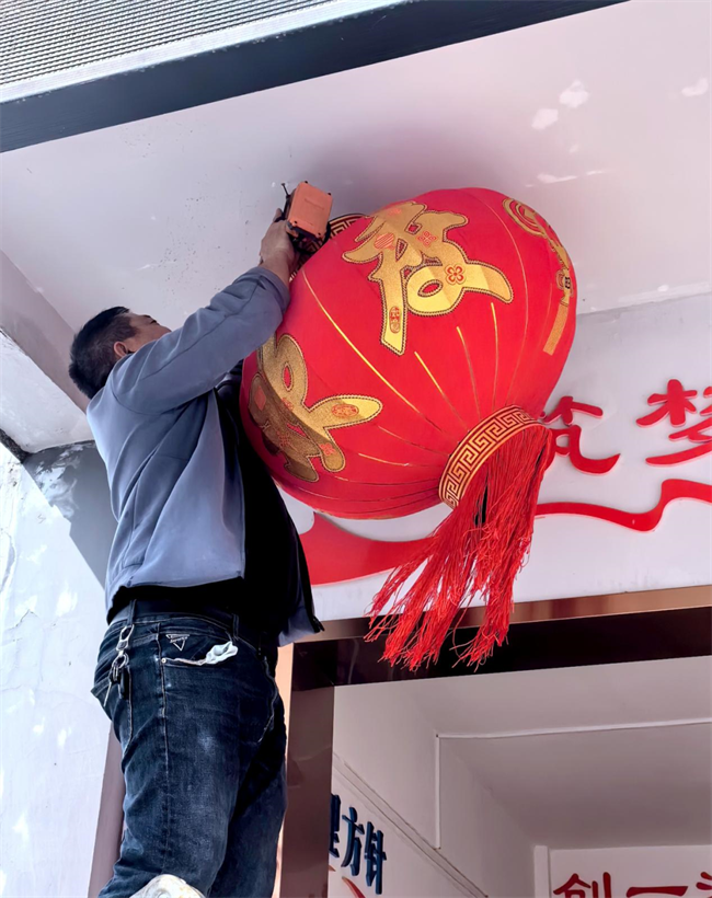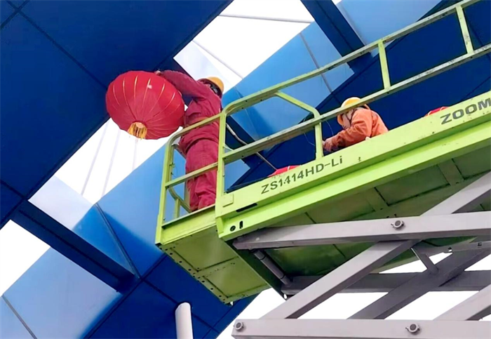 设备物资公司职工在办公区挂上大红灯笼
