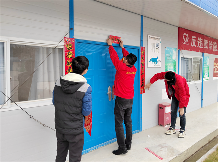 第三工程公司六安七标项目职工在项目部贴春联