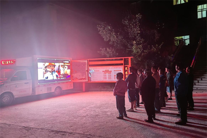 小编上前一问,才知道这是贵州公路集团第六工程公司开展安全宣传教育的新手段,这台别致的小货车是一台定制的专用移动式安全教育宣传车,利用“坝坝电影”这样一个群众聚集的场合,到各项目一线工点进行“巡回”安全知识宣传教育,以解决传统安全教育培训中心授课方式呆板、培训对象分散、培训内容针对性不强、培训场所有限等问题。