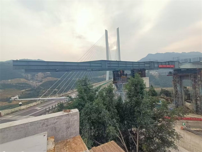 重庆奉建项目唐家湾大桥右幅钢箱梁顶推顺利完成